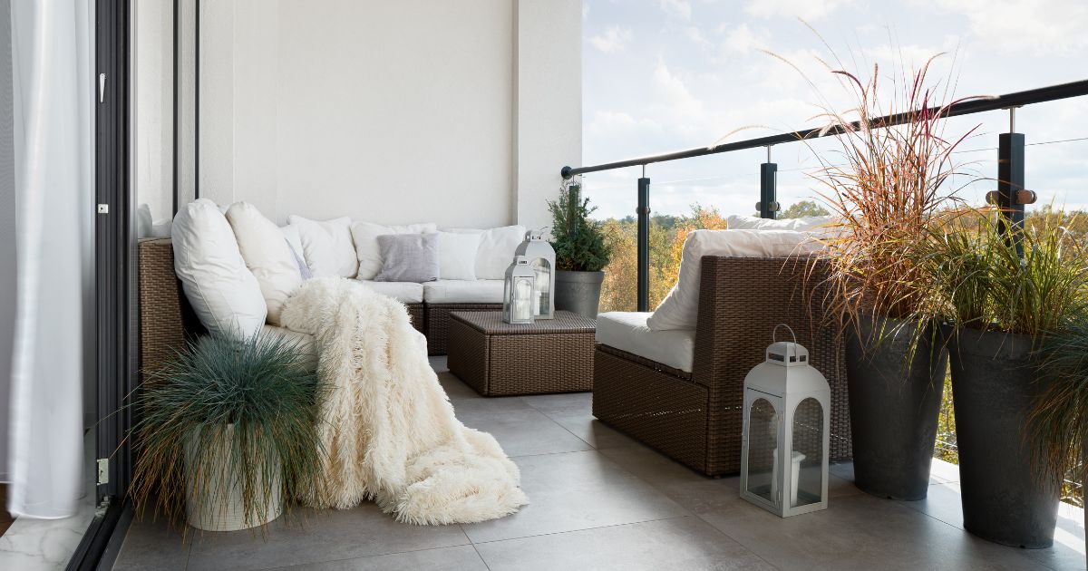 Ban công là vị trí lý tưởng để thiết lập khu vực nghỉ ngơi với ánh sáng tự nhiên và không khí trong lành. Đặc biệt, việc bổ sung cây xanh nhỏ gọn sẽ tạo cảm giác gần gũi thiên nhiên và thư thái hơn rất nhiều.